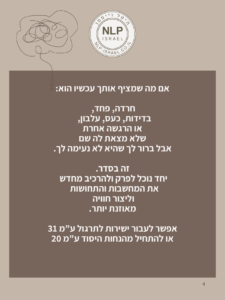 • תרגול 2 – “עוגן לחיים יציבים” – תרגול התניה חדשה לחיזוק פנימי.